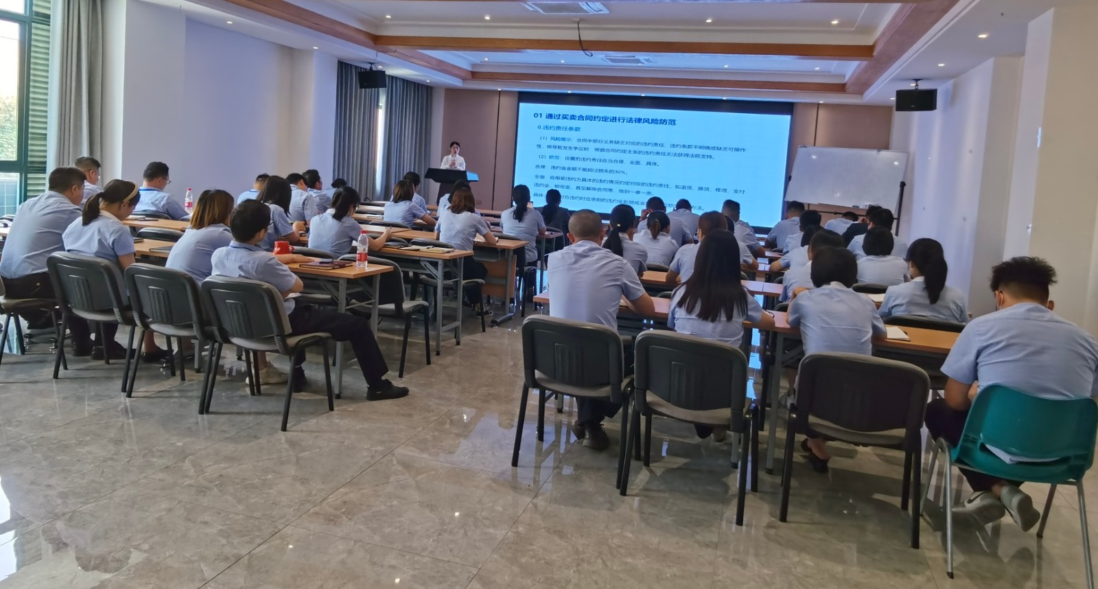 曹律師在講解中以案例為主,結(jié)合法律條款和公司具體業(yè)務(wù)情況,演講結(jié)束后曹律師與員工進(jìn)行了熱烈的互動解答環(huán)節(jié)。此次培訓(xùn)旨在提升員工對買賣合同法的法律素養(yǎng),特別是風(fēng)險(xiǎn)防范和管控方面。參加培訓(xùn)的人員對這次培訓(xùn)給予一致好評。