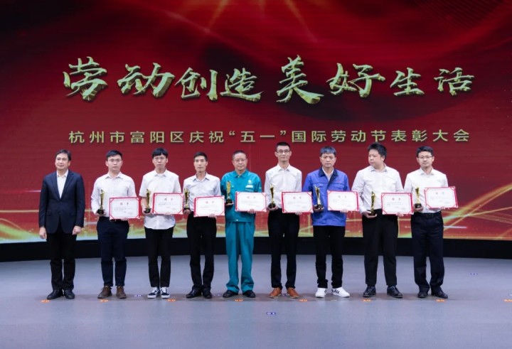 ?2022年4月29日,杭州市富陽(yáng)區(qū)慶?!拔逡弧眹?guó)際勞動(dòng)節(jié)表彰大會(huì)在召開(kāi),公司徐崇玉研發(fā)團(tuán)隊(duì)榮獲2021年度富陽(yáng)區(qū)職工“突出貢獻(xiàn)獎(jiǎng)”。