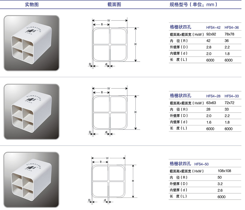 “豐”牌PVC四孔柵格管適用于通信光纜的穿導、隔離及保護,廣泛應用于光纖通訊、有線電視、多媒體傳輸?shù)裙こ獭?/span>